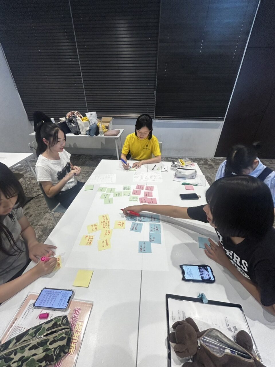 プレヒアリングで深めた関心をもとにブレインストーミングを行い、グループごとに考えの発散を行いました。中高生はたち少し苦戦しつつも、メンターや大学生メンバーと協力しながら多くの考えを発散することができました。